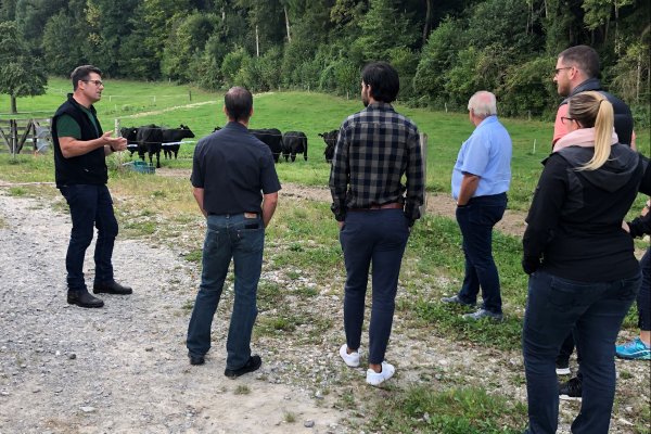 Die Fleischfachberaterinnen und Fleischfachberater von Pistor besuchen in Bergdietikon den Hof der Familie Eichenberger. Es handelt sich nicht um irgendeinen Hof, sondern um das zu Hause der majestätischen Swiss Black Angus.