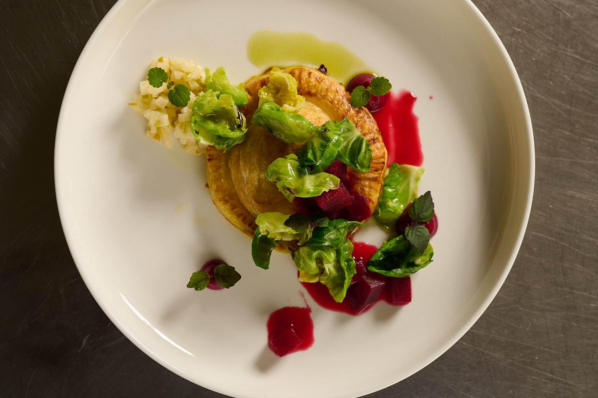 In der Küche tüftelt Executive Chef Martin Strehle stets an neuen Gerichten: Beim Meiringer Ziegenkäse im Blätterteigmantel unterstützt ihn der Kochlernende Colin. Die Zutaten sind lokal, die Kräuter frisch gepflückt. So schmeckt Regionalität.