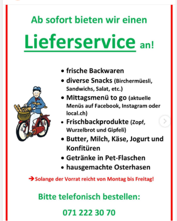 Toll, dass bereits einige Betriebe Lieferdienste und weitere Hilfestellungen eingeführt haben. Dies ist der richtige Weg, auch wenn dies lediglich einen Bruchteil wettmacht. Und genauso wichtig ist es, Ihre Kunden über diese Massnahmen zu informieren. Wir haben Tipps zusammengestellt, was Sie nebst der Kommunikation vor dem Geschäft noch tun können und teilen Ihre Beiträge gerne über unsere sozialen Medien. Vielleicht inspiriert Sie auch ein Branchenkollege.