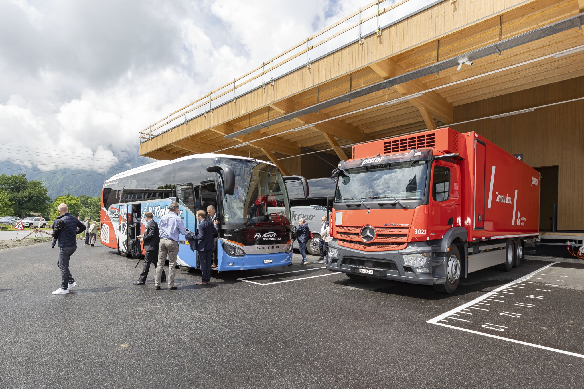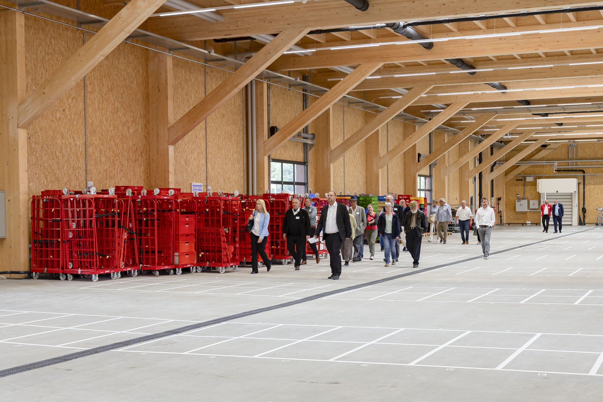 Am Nachmittag gelangten die Genossenschafter:innen per Shuttlebus von Bad Ragaz nach Sennwald, wo am 12. Mai die neue Verteilzentrale Ost der Pistor AG eröffnet worden ist. Die Besucher:innen besichtigten das neue Gebäude im Rahmen eines informativen Rundgangs, auf dem sie allerlei Zahlen und Fakten über das nachhaltige Bauwerk kennenlernten, das sinnbildlich für den Themenschwerpunkt der 109. GV steht: den Ausbau der Infrastruktur.
